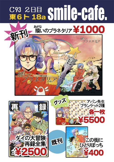 【冬コミ】12月30日C93「smile-cafe.」東6ト18a ダイの大冒険・アバン先生と子ヒュンケルの新刊、アバン先生ブランケット、再録全集の再版、アバン先生とポップの既刊を頒布予定。BOOTH限定でマグカップも→予約受付中。https://t.co/J8uCHO70Jo