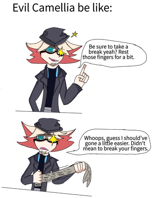 I had/drew a bit of a dumb idea at 1 o’clock last night, this is that idea… this is what happens when I’m tired… oh well. I’m only… somewhat sorry. #FNFCamellia #fanart #digitalart