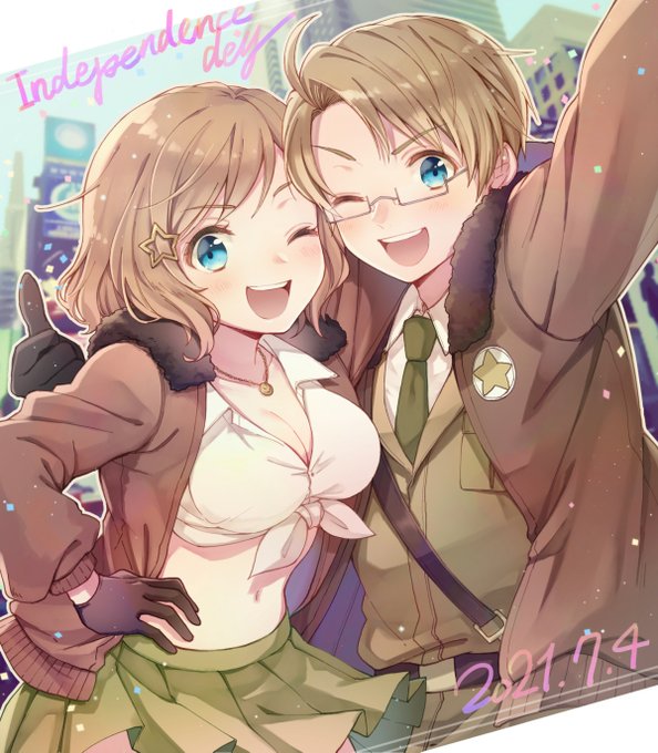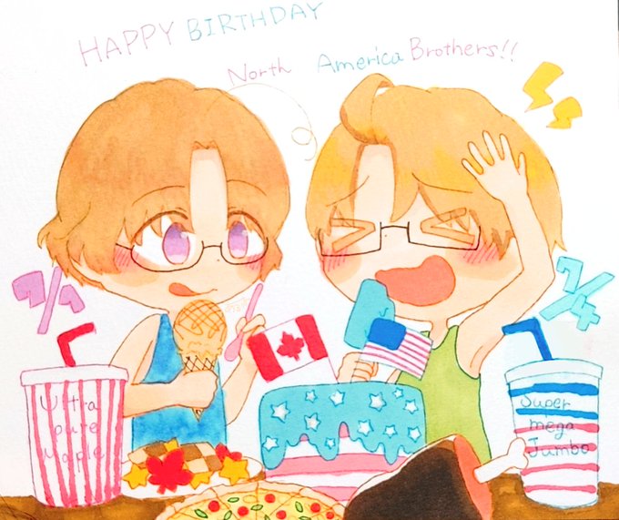 大急ぎで描いた雑でごめんねメリカお誕生日おめでとう!!! #アルフレッド生誕祭2021 #245年目のヒーロー #メリ誕2021