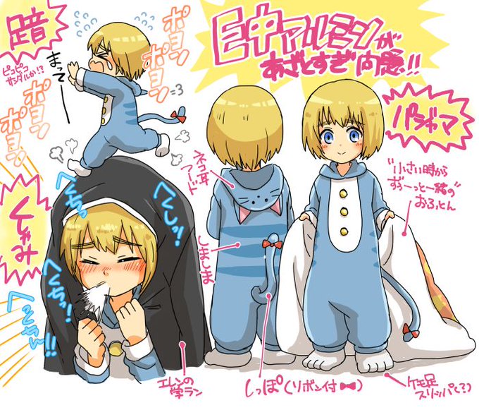 I'll never get over how adorable Armin is in his cat kigu from Attack on Junior High 💙💙💙