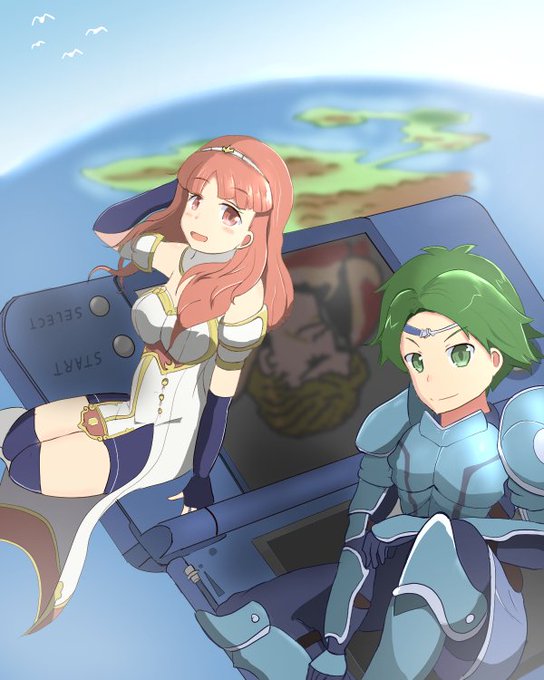 だいぶ遅れましたが、FE外伝の周年記念イラストが完成♪ アルム&セリカ(+第三の男)です。