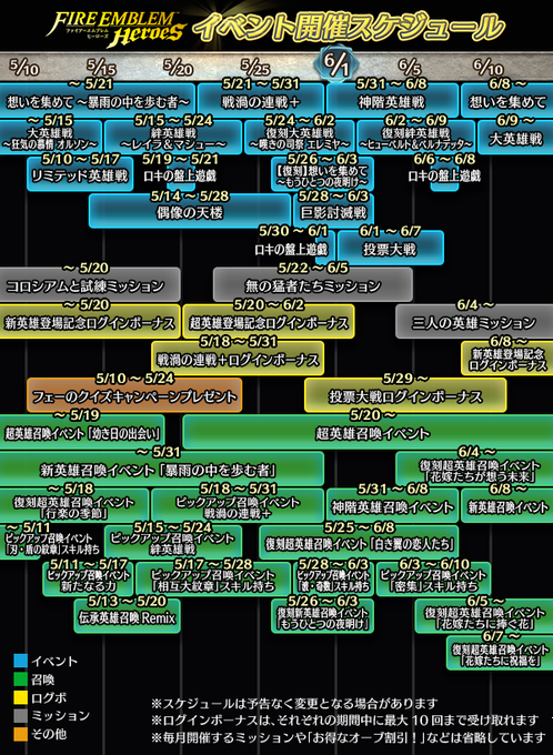 新英雄の情報はいつも通りなら6日、7日にアプデですね。Echoesが大本命として、CVフラグが凄いので可能性高いのが覚醒、風花ってところ