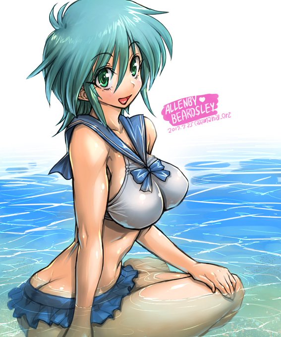 【お絵かき】昨日がドモンとアレンビーの誕生日らしかったので、遅刻承知でアレンビーを。乗機のデザイン的に水着はこれしかないと思いました。ドモンは画面の外でレインの尻に敷かれてます