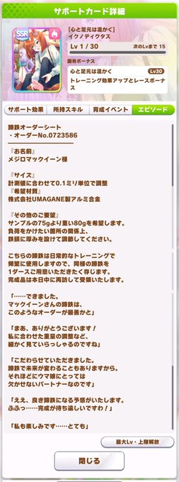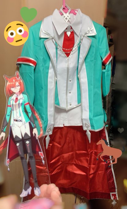 イクノディクタスさんSSRサポカ実装日というよき日に勝負服が届いた!しゅごい!!😭📦✨イクノさんが本実装されたら初めて袖を通す!!…っていうのもエモいなぁ…🤔💚🐎