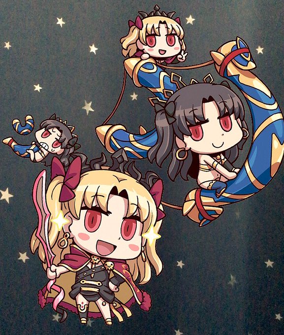 完成ー!イシュタルとエレシュキガル。ふたりとも可愛いので大好きです(*´ω`) イシュタルさんはうちのカルデアにはまだお迎えできてないので早く……お迎えしたい………