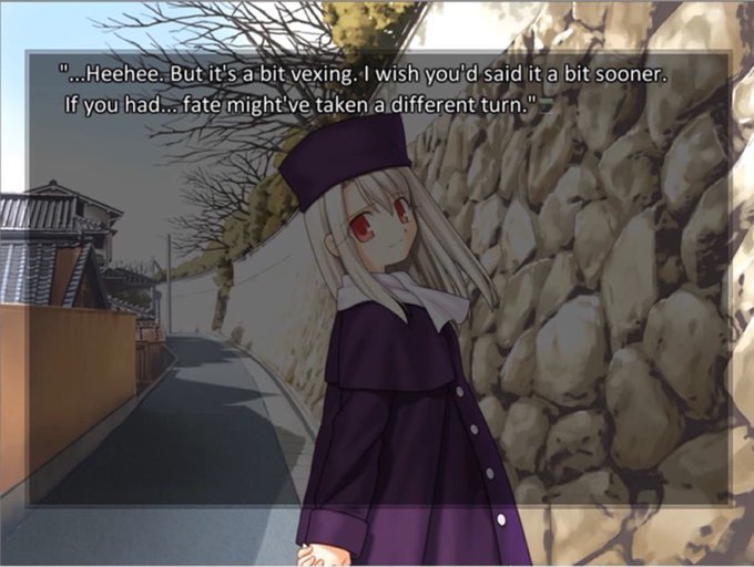 @iKoNkek @crystalpepsi420 @Killua69100 @wormby_ about liking or disliking sakura anymore. I feel like if nasu was a competent person he would have done it how he originally said he would, with two different parts of the visual novel with two route individually. him focusing on both sakura AND illya gave us corny shit like this