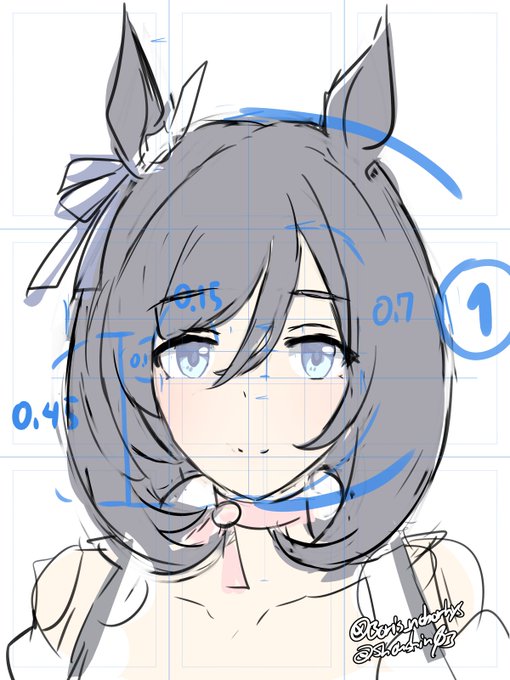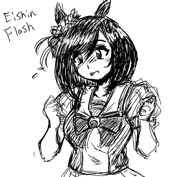 息抜きエイシンフラッシュさん。他の二次創作絵描く時もだけど、「らしさ」がなるべく出るよう、資料のスクショとか絵で比率を計測してから描きたい絵の形に収めてます。