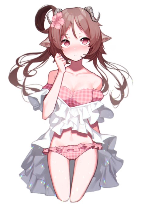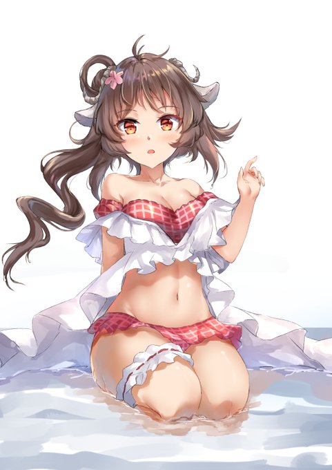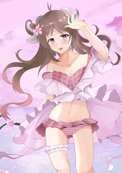 Вы ягнёнка не видели? /// 🍘 #Eyjafjalla 💋 #Arknights 💣 #cute 🧸 #girl 🍚 #horns ⚾️ #swimsuit 🍵 #midriff 🌯 /// Автор работы: Kogetsu /// Источник: https://t.co/OS2irEUcg8