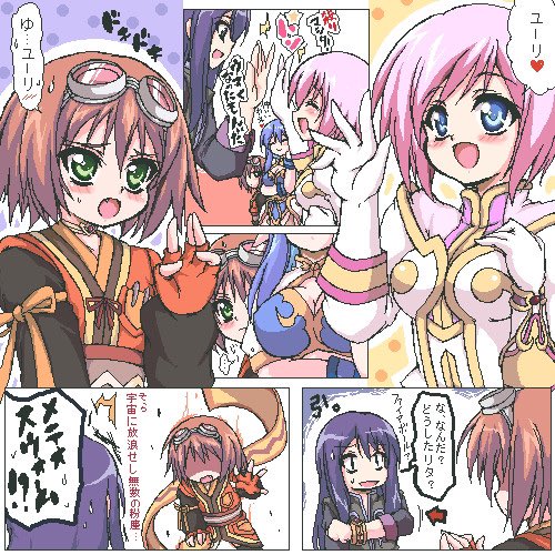 再録本収録の過去TOV本の小ネタ解説その②オールキャラギャグ「名前のワケ」はリタっちの名前を色んなものに書く癖がネタの元なので、表紙のリタッチは皆の持ち物にちっさく名前を入れてます。「がきんちょ」とか、「いぬっころ」とか、「ジュディス」とか…日本語で(笑)
