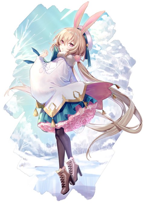ことちゃん(@kou_koto_ )の線画お借りして塗らせていただきましたー!こんなポーズ描いたことないからなかなかに難しかった!( ´ ` )素敵な線画ありがとー!⸌⍤⃝⸍
