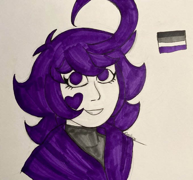In honor of Pride Month we’re drawing Alesa using colours of the different pride flags this month! For today, here’s Alesa with the colours of the asexual flag! 🖤 🤍 💜 -Shey