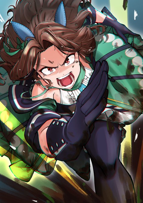 本日の写真は日本ダービーで3着のワイスマネージャーちゃん。グリーン系の勝負服とメガネがお洒落ですね。 #モブウマ娘 #ワイスマネージャー