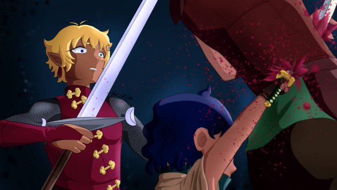These days I draw a lot of art from our dnd campaign, but I sometimes draw fanart too! also cosplay, music, and voice acting!
