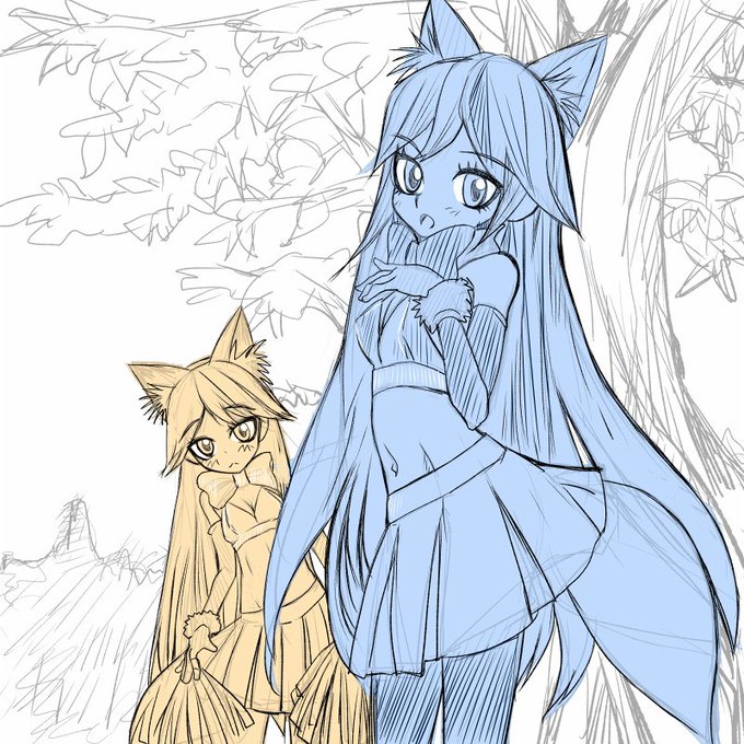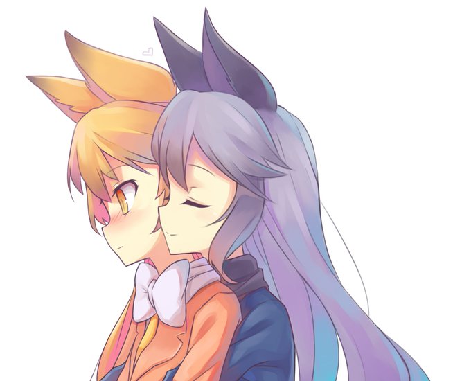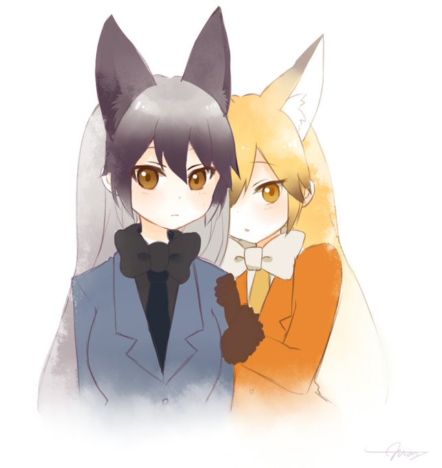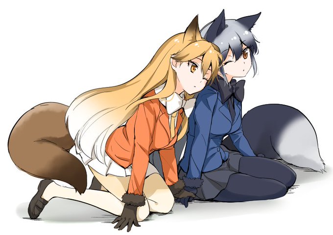 けものフレンズからギンギツネちゃん、キタキツネちゃん描きました! まじめキャラのギンギツネちゃんもだらけてるキタキツネちゃんもどっちも可愛いです
