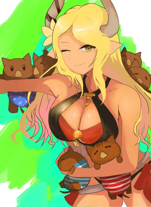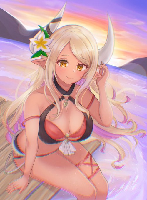 Drawing of Summer Kumbhira from Granblue #GranblueFantasy #Kumbhira #summer #digitalart #lineart #art #explodingcheeseart
