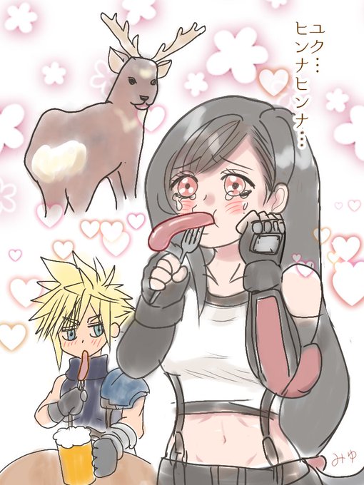 あと1話で金カム終わっちゃうよー😭蝦夷鹿(ユク)ソーセージが美味(ヒンナ)過ぎて泣くティファちゃんのラクガキ