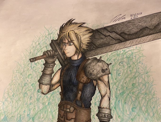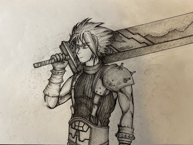 Cloud is just way too much fun to draw. It’s not perfect but i’m happy with the progress i’m making #ArtistOnTwitter #artists #FinalFantasy #finalfantasy7 #CloudStrife #FINALFANTASYVIIREMAKE