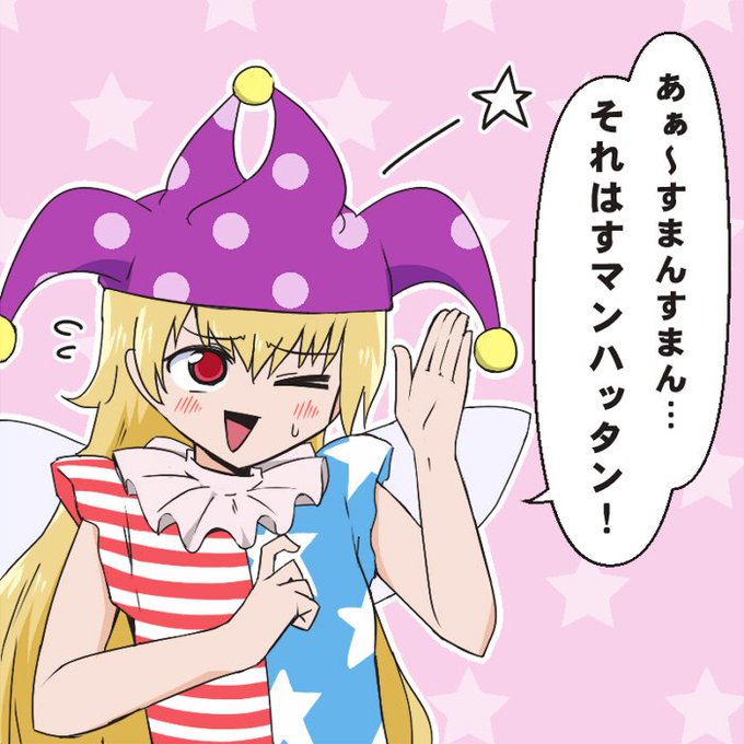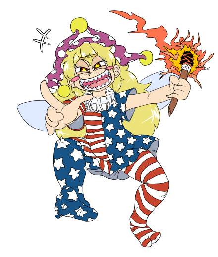 リプライありがとうございました♡ウェーブがかった金髪ロング♡赤目♡柄タイツ♡星条旗柄♡変な帽子♡松明♡金髪の恨みありまくりそうな女と一緒に居そう♡私は完璧にクラウンピースちゃんですね✌