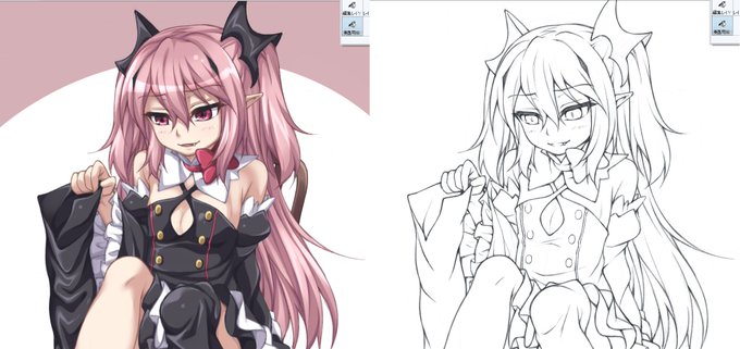 色が塗ってあると分かりにくいですが、色を消せば・・・ほら、ちょっと濃い目の下描きに着色してるだけでしょう?