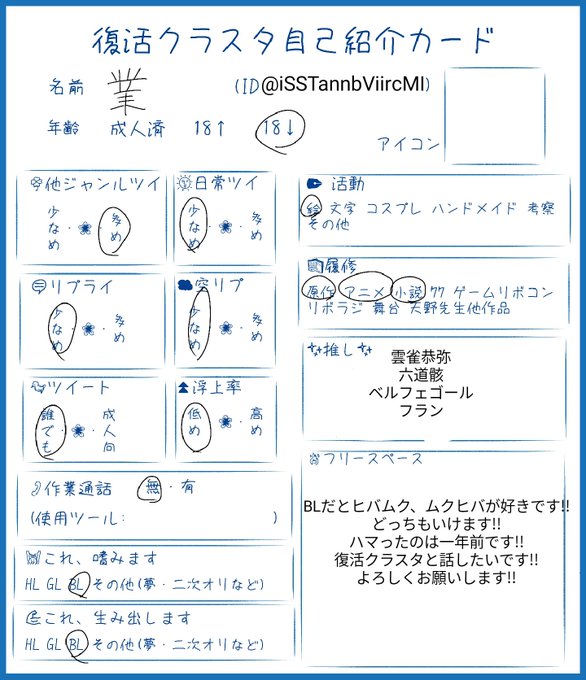 #復活クラスタ自己紹介カード