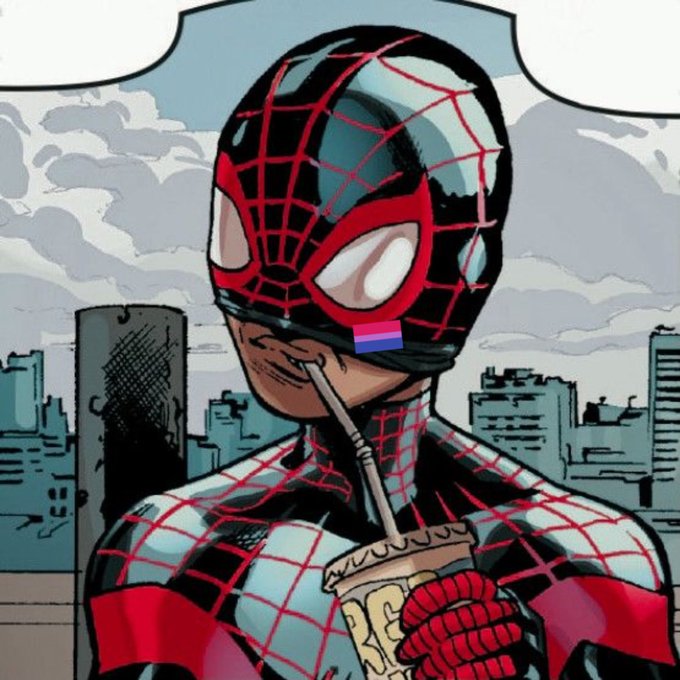 today's lgbt comic character is miles morales! he is bisexual and transmasc! (hcs)