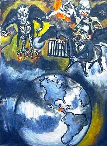 We have relatively few political works by her as to live her life was a political act in itself. Each picture is imbued with the sense of union in diversity. Eisenhower, MacCarthy & Dulles (1953), Rita & Hubert (1958), Skull (1958) & George Arce (1959)