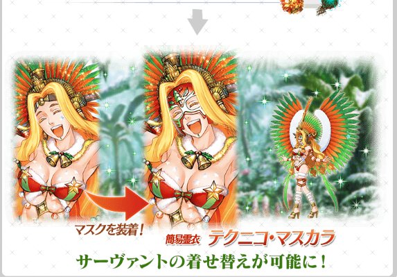 Gather Kukulkan Masks to ascend the event Servant Quetzalcoatl (Santa/Samba)!