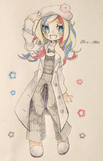 着方を考えて描いてみたけど、他の服は手持ちじゃないからこのコーデできない、、、😐