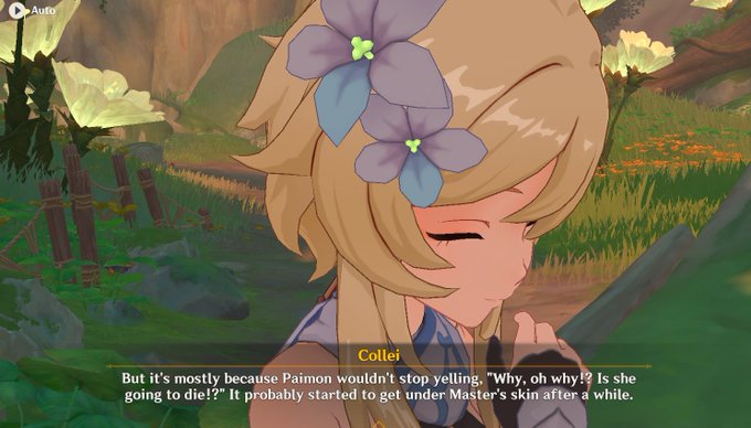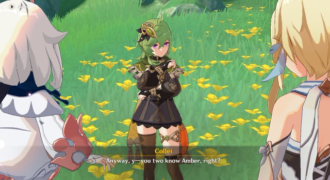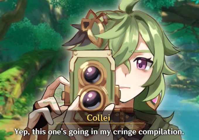 I really did fell in love with Collei's design and personality/lore I can really relate to her and how much she had gone thru. I really adore her, and I can relate the pain/trauma. I'm more so glad she has grown up due to amber helping her out. Plus her art is amazing.