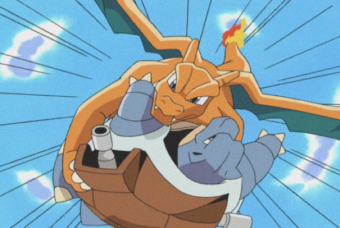 今日は名バトルシーンのひとつであるサトシのリザードンVSシゲルのカメックスの写真を載せます…!