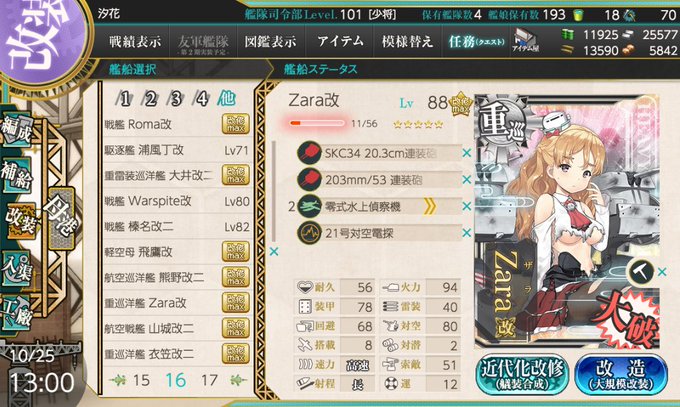 本日はイタリアの重巡洋艦「ザラ」とケッコンカッコカリ。