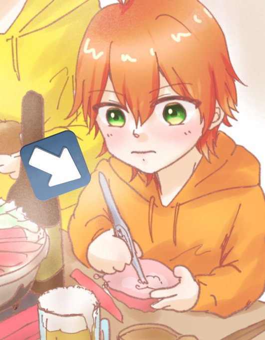 カニの甲羅のとこガリガリしてて無言になってる推しを描きました🤗🦀