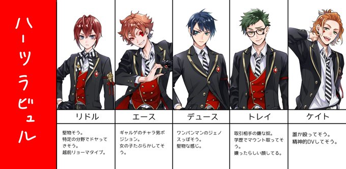 身内(男・ツイステ未プレイ)に名前とキャラデザ(制服)だけ見せてミリしらしてもらいました。どうぞ。(本人の掲載許可を得ています)(続きはリプ欄に) #ミリしら