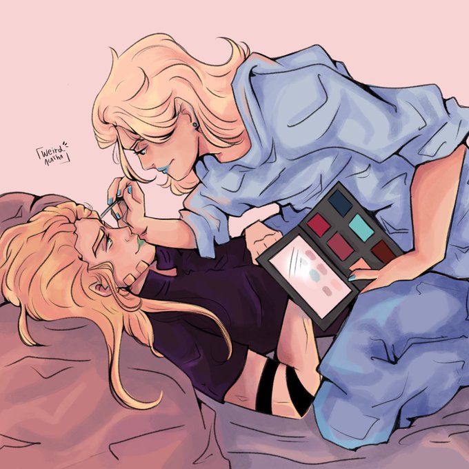 瞳ハイライトの塗り方によって雰囲気が違って見えるので面白いです☺️