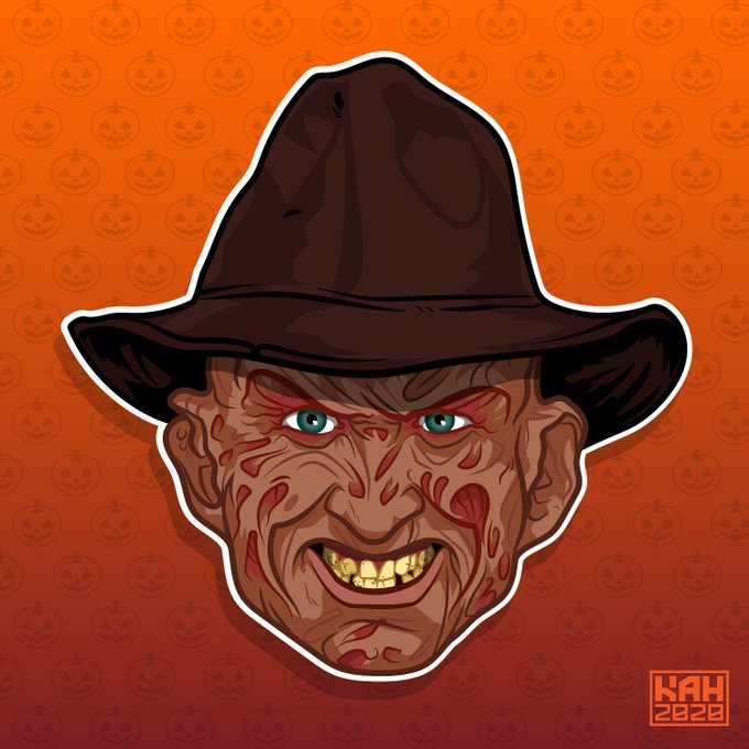 Presenting #FreddyKruger, as played by actor #RobertEnglund, in the film #ANightmareOnElmStreet! Now available as a sticker on my @Etsy store! Don’t go to sleep, instead, head over to https://t.co/oeUbMHQhAZ to get yours today. Check back tmrw for the last reveal! #MrHinkleDraws