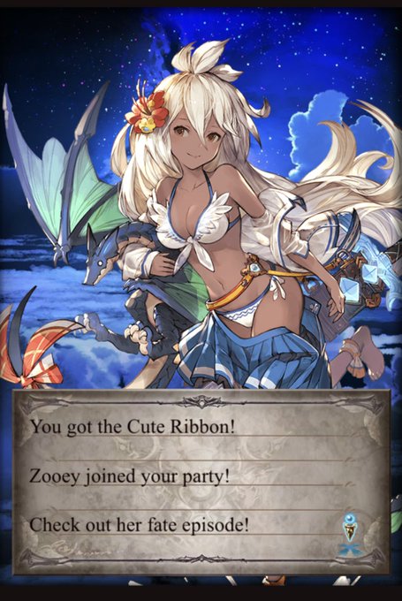 Literally just logged into GBF knowing I'd get a gold moon today, the last one I needed so I could get Zooey!!!!!!!!! 💟💟💟💟