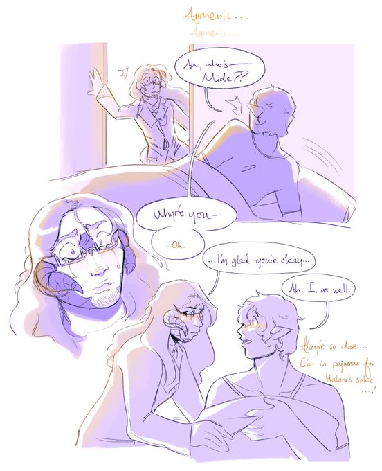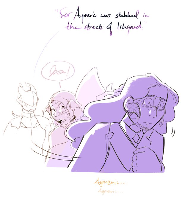 doodled a small thing about That part in heavensward because i recently replayed it and realized Mide would be having some emotions. They weren't dating Aymeric then, but it stirred something...