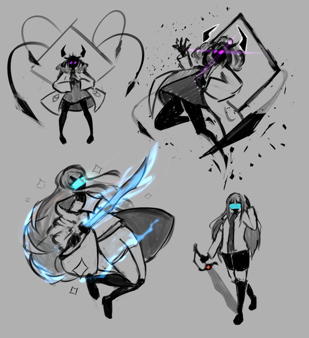 画像だと修正とか、武器を線画から描くのが面倒だったので厚塗りで描いたりですね