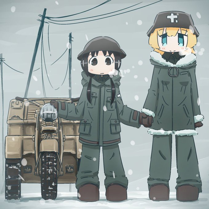 少女終末旅行のチトとユーリです 少女終末旅行はアニメを見ていたのですが8話のレズダンスと9話のロボ回が特に好きでした 退廃した世界のなか少女2人がゆる~く喋ってる感じがたまらないです