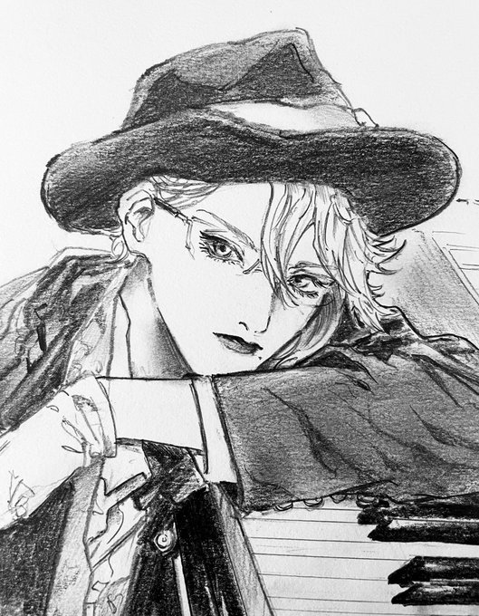 mariさん(@saboten_mari )の素晴らしいアズお写真を描かせていただきました🎹💜描いてる間ずっと幸せだった…こんな顔が良い人が🐙してくれてるって夢〜!?てひたすら感動していた😭