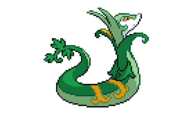 Lead Pokemon designer Ken Sugimori: "...Serperior actually has a pair of small hands as well, you know. He just keeps them folded behind his back, looking regal (laughs)."