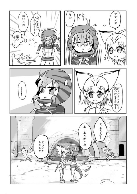 本日4月28日に発売される『けものフレンズ アンソロジーコミック ジャパリカフェ編』にて8P、スナネコとツチノコのギャグマンガ描かせて頂いてます!よろしくお願いします! https://t.co/nEXTwBwfcB