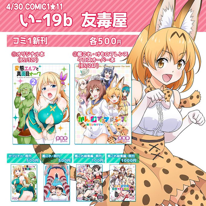 4/30のCOMIC1「い-19b 友毒屋」のお品書きです。