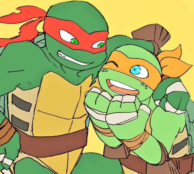 【亀】一日1枚亀落書き15日目。今日は忙しいと思ったので、早い時刻に大体描いておいた。新亀レオ。新亀レオの笑顔って描いたことなかったなぁと思って。気合の入ってるレオの顔が好きだよ。