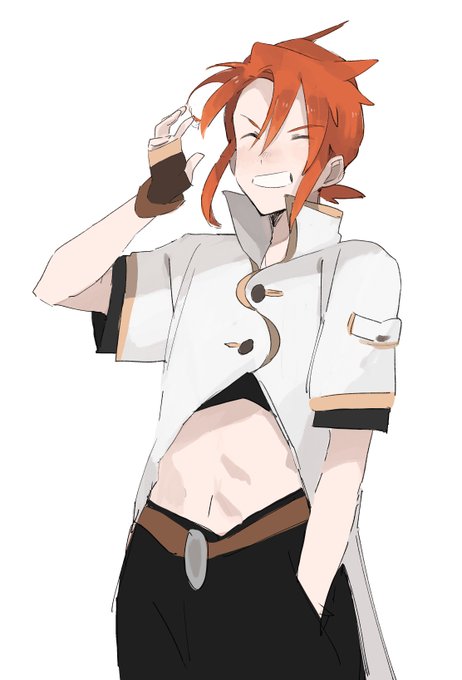 four pictures of the Tales of Abyss main character, in order of ascending butch girl vibes
