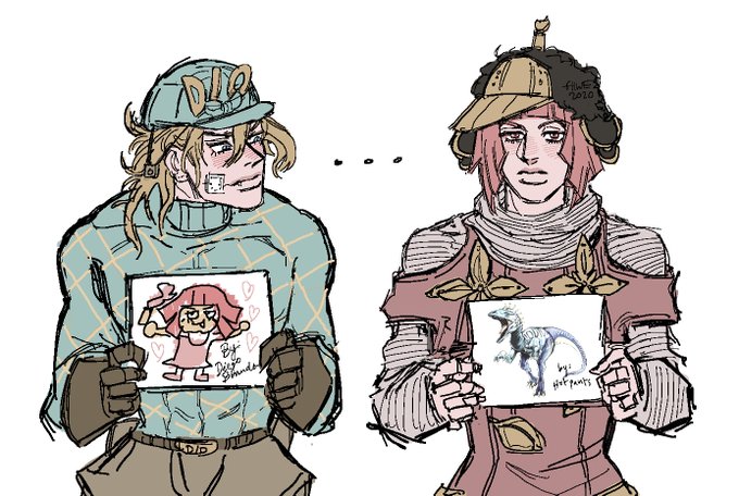 was working on smth else but it was taking too long so here's the final day 7 #Dinopants2020 doodle!!! i think these two also had fun doodling each other... #SteelBallRun