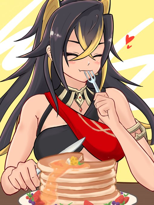 イベントでパンケーキ渡されて喜ぶディシアが可愛すぎて、いっぱいパンケーキ食べてるディシア描きました。ギリギリになっちゃったけど、ディシア誕生日おめでとう!