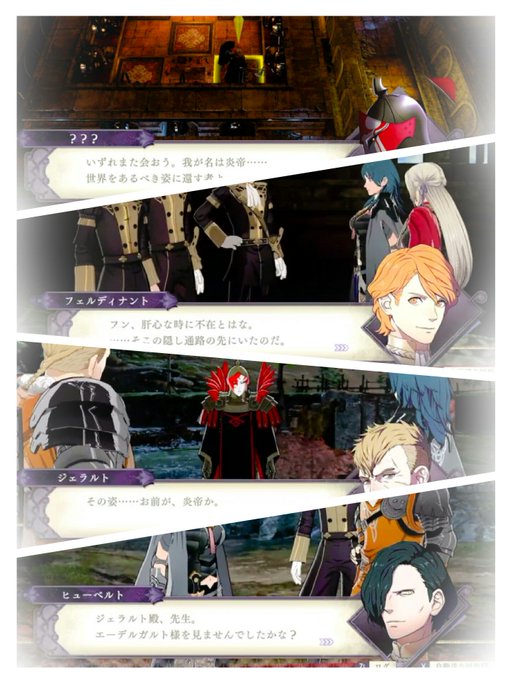 多くの方は炎帝が登場時はエーデルガルトがいつもいないから=炎帝という理由…しかし2、3週目となってはそれだけでは弱いかと…