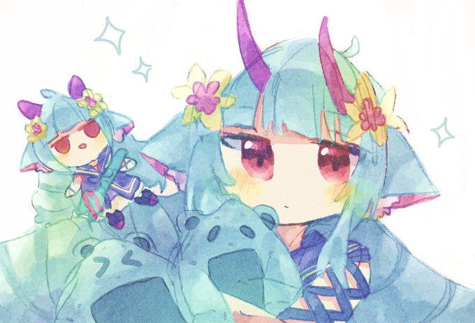ぴょこさん(@ByriU7x56FlrfkK)の線画お借りしてコンパスのデルミンのコスチュームにあわせて塗らせて頂きました!オリジナルのは手直し入れただけだけど…間に合ってよかったかな…?