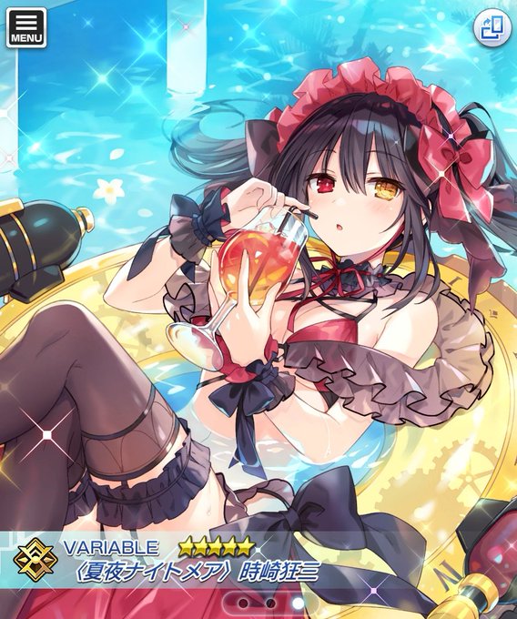 水着にガーターベルトはさて置き、つなこさんのイラストにスキルも申し分なく、相変わらずデートアライブ勢は強い。システィーもかわいく狂三と組ませるといい感じ。